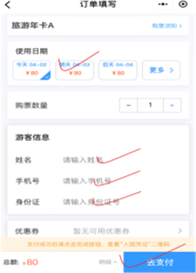 旅游年卡小程序自助購票流程