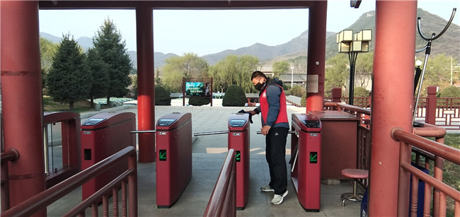 為了做好景區(qū)的疫情防控工作,確保游客安全有序入園,嵩山景區(qū)實行網(wǎng)上預(yù)約購票和線下掃碼購票的兩種方式,防止游客聚集。實行電子票入園的無接觸式服務(wù),在景區(qū)入園處設(shè)置體溫檢測點和臨時隔離點,游客只有健康碼為綠色和體溫檢測正常才能入園。同時景區(qū)實行一日五次的環(huán)境衛(wèi)生消殺制度,對景區(qū)游客服務(wù)中心、休息區(qū)、觀光車等公共區(qū)域及基礎(chǔ)設(shè)施進行定時消毒;景區(qū)的觀光車實行半數(shù)滿員,每輛車不超過荷載人數(shù)的二分之一。