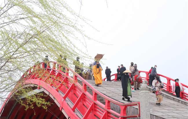 景區(qū)將清明特色演出迎送新酒、儺面舞、清明版快閃等融入到清明特色大巡游里,具有節(jié)慶獨(dú)特性,對(duì)游客極具吸引力和感染力。