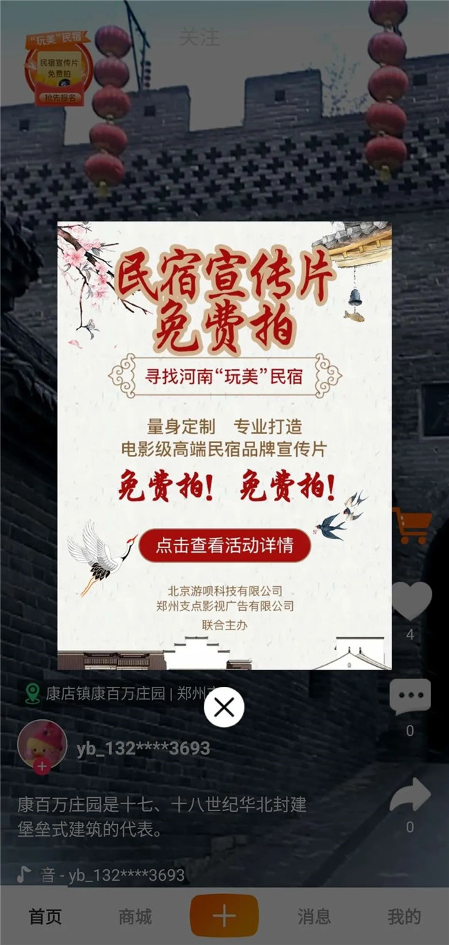 尋找河南“玩美”民宿 總價值300萬的宣傳片免費拍啦