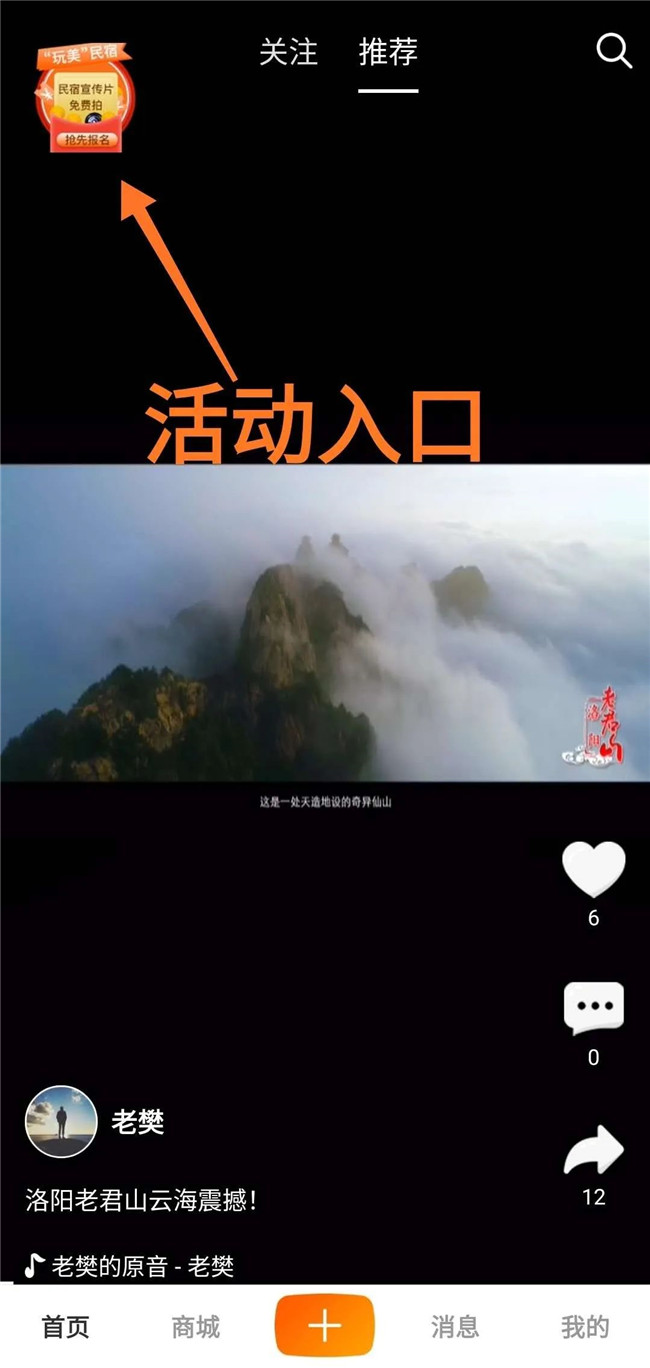 02通過您注冊的官方賬號,創(chuàng)作一條60秒的民宿介紹視頻至游唄APP,定位為民宿所在地,并@游唄,然后接受公眾點贊投票。