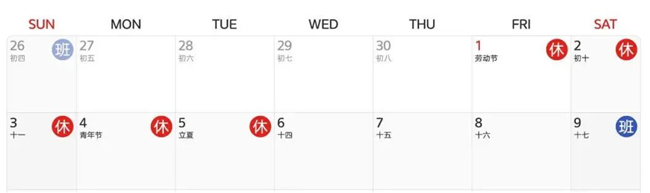 五一假期時間表