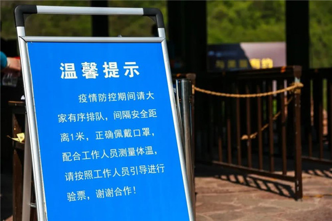 增設(shè)疫情防控標(biāo)識標(biāo)牌達(dá)3000多個(gè),提醒廣大游客做好防護(hù)、分散游覽、避免聚集。