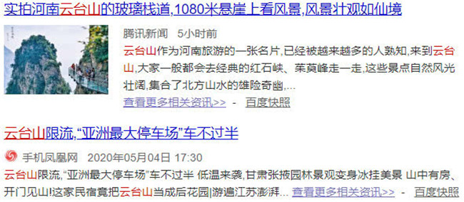 云臺山假日旅游動(dòng)態(tài)