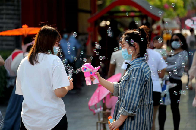 雖然隔著口罩,但無法阻擋游客發(fā)自內(nèi)心的開心和笑容;雖然這個“五一”有高溫、有寒潮,但無法阻擋游客外出散心的熱情。
