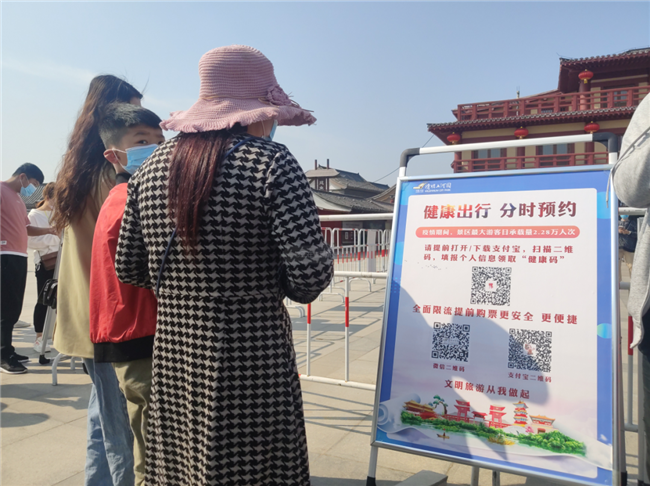 在“五一”假期,景區(qū)特推出“分時段預(yù)約”制度,鼓勵游客制定出游計劃,引導(dǎo)游客間隔入園,錯峰旅游。