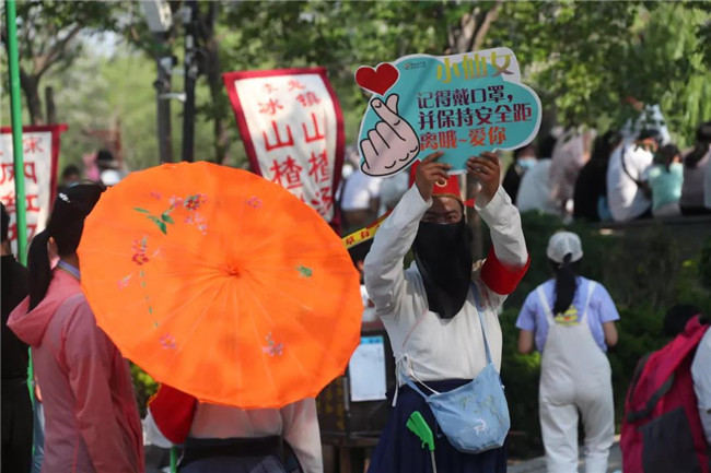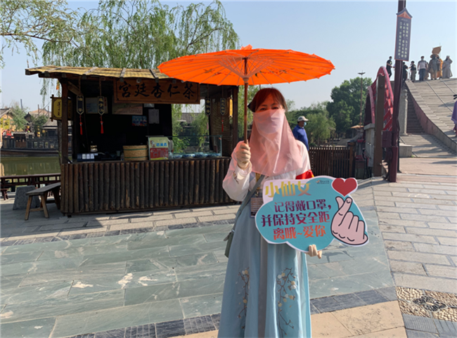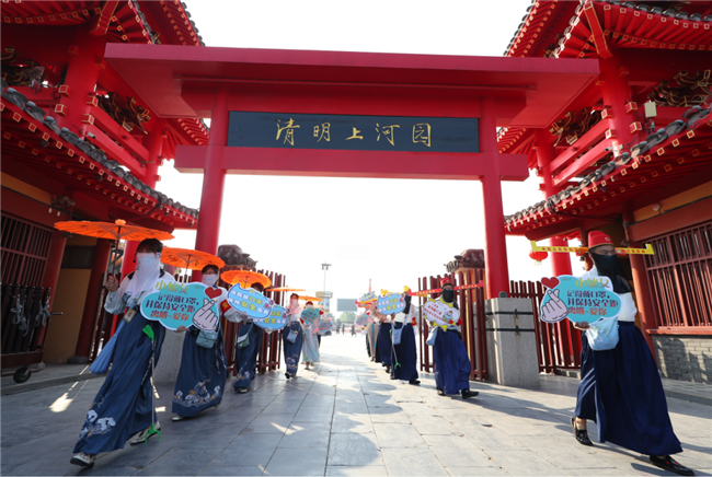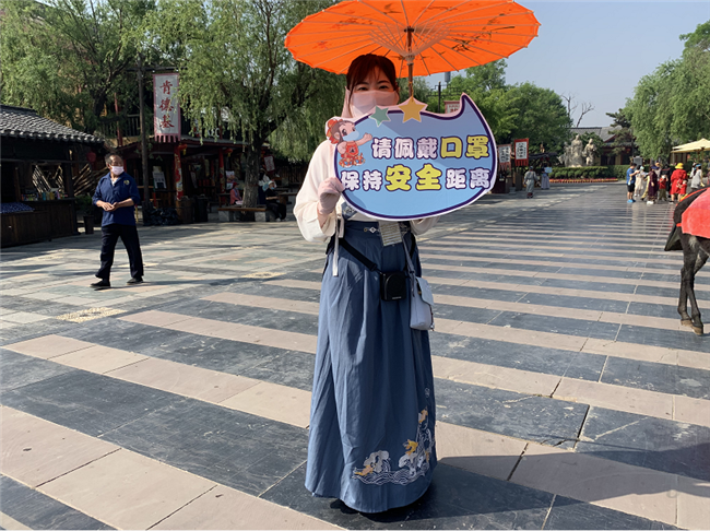 這個“五一”,清明上河園創(chuàng)新結(jié)合大宋文化和防疫需求,推出讓工作人員穿宋裝戴1.2米長帽翅的“宋式官帽”在園區(qū)巡視并提示游客,通過這種趣味性的方式提示游客保持距離、文明游覽,得到游客的一致好評,其中結(jié)合此創(chuàng)意拍攝的短視頻成為當(dāng)日新浪微博熱搜前40,累計播放量超過1000萬次。