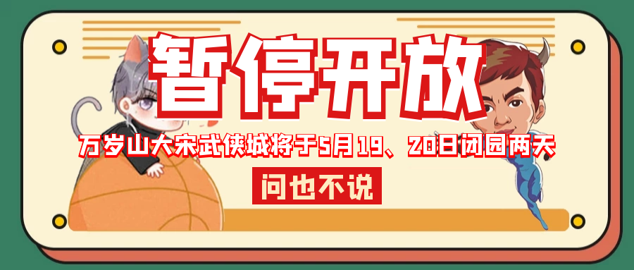 重要的事情說三遍,重要的事情說三遍,重要的事情說三遍,因大型拍攝,萬歲山大宋武俠城景區(qū)將于5月19、20日暫停開放2日!