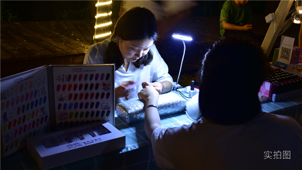 湖畔棧道上,琳瑯滿目的攤位讓人目不暇接。燈火闌珊處挑一件復古的耳飾,再為指甲做個美容,捧一束嬌嫩欲滴的百合,伴著湖畔的風和溫柔的星光,和有趣的靈魂相遇,心情也變得歡暢起來。
