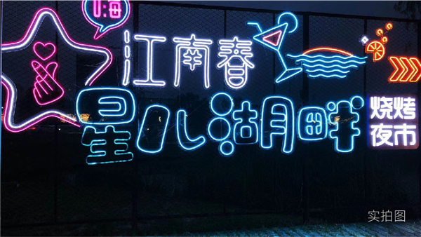 夏天的夜晚,永遠少不了啤酒與燒烤。當星兒湖畔樹上的彩燈亮起,當考究的桌椅逐漸滿座,當冒著誘人油光的烤串、雞翅,伴著沁爽的啤酒充斥在唇舌間,得到的就是味覺的滿足。