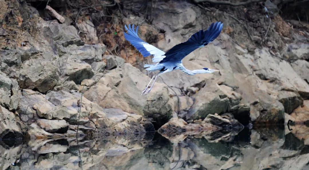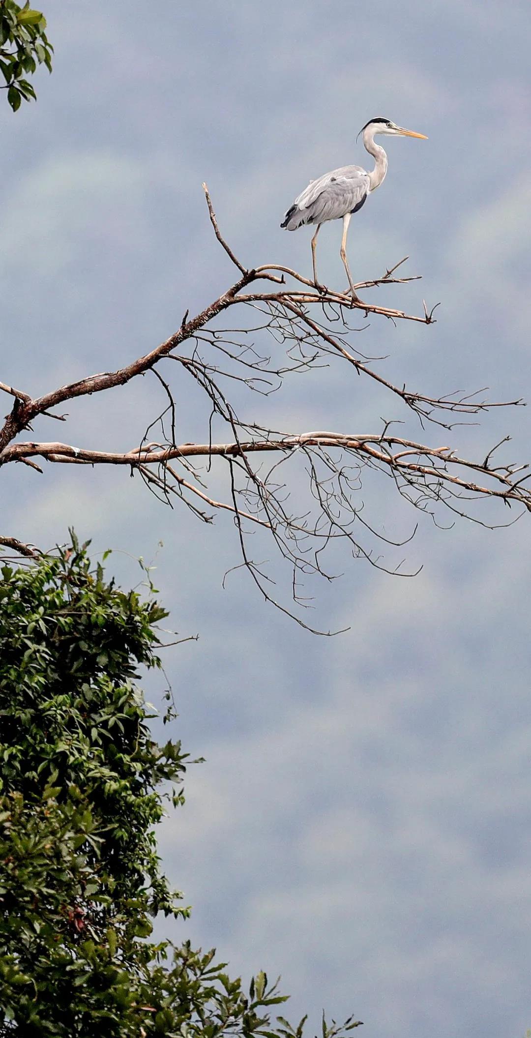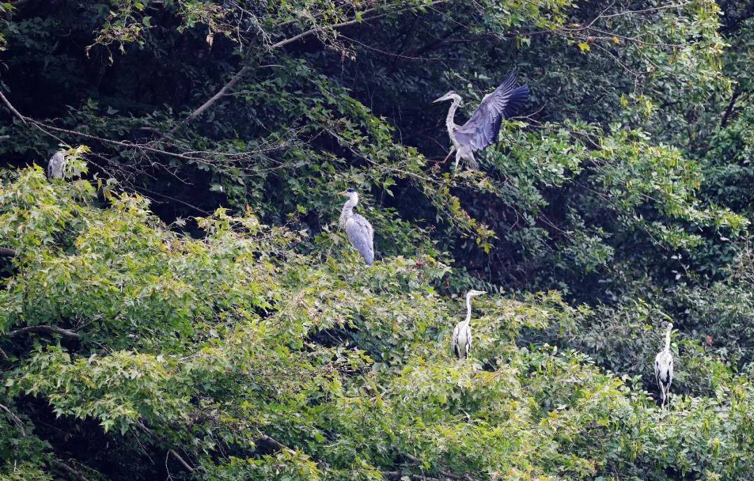 淡竹農(nóng)林村,沿著芹坑源的小溪入湖,是長(zhǎng)而窄的千島湖庫(kù)灣。這里,常年棲息著數(shù)百只蒼鷺,還有夜鷺和鷹。兩岸茂盛的闊葉林植被保護(hù)得非常好,山澗小溪清澈流淌,一湖秀水如明鏡映照著藍(lán)天白云、青翠林木。因?yàn)檫@里不是千島湖主航道,每天只有本地早出晚歸的幾條捕魚小船,兩岸青山人跡罕至。沒有了人類的打擾,加上離新安江大壩不遠(yuǎn),庫(kù)灣右側(cè)的主河道激流被大壩阻擋,形成一個(gè)回水區(qū),引來(lái)豐富的魚類資源。