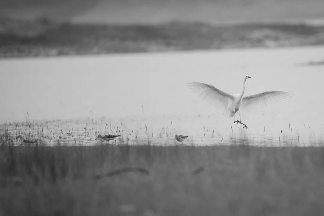 在拍鳥的過(guò)程中,我始終保持原始野拍,拍鳥過(guò)程中絕對(duì)不會(huì)去誘鳥追鳥嚇鳥。記得有一次在十八塢,我躲在偽裝的帳篷里拍白鷺,準(zhǔn)備回家的時(shí)候,透過(guò)帳篷的小窗口往后看到一只灰頭麥雞蹲在經(jīng)過(guò)的路邊一動(dòng)不動(dòng),我悄悄用鏡頭拉近一看,麥雞身下有幾個(gè)蛋,原來(lái)是麥雞媽媽在孵化小鳥呢。為了不打擾它,我又在偽裝篷里等了兩個(gè)多小時(shí)。