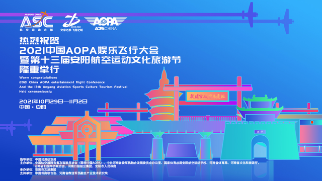第十三屆安陽航空運動文化旅游節(jié)將于10月29日-11月2日在安陽市舉行,本屆航空運動文化旅游節(jié)由中國航空器擁有者及駕駛員協(xié)會、國家體育總局安陽航空運動學校、中共河南省委軍民融合發(fā)展委員會辦公室、河南省發(fā)展和改革委員會、工業(yè)和信信息化廳、體育局、文化和旅游廳、歸國華僑聯(lián)合會、河南日報報業(yè)集團以及安陽市人民政府主辦。