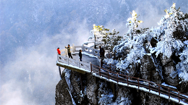 堯山四季風(fēng)光迷人:春天,綠葉婆娑、鳥語花香;夏天,林深蔭濃清爽宜人,當(dāng)平原大地“赤日炎炎似火燒”氣溫達(dá)37—38℃時,這里只有23—26℃;秋天,山果累累、層林盡染;冬季,銀裝素裹,瓊枝玉葉似仙境。四季美景,美不勝收。