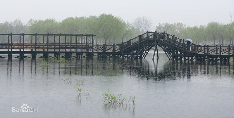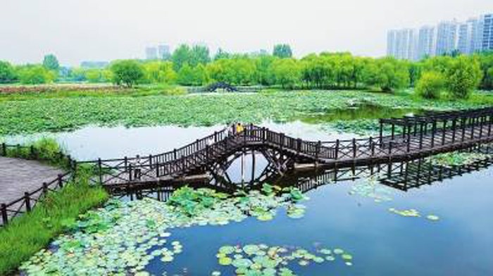 在濕地公園園區(qū)東北部的休閑游憩帶修建木棧道,讓游人親近水土,在水網(wǎng)密布、蘆葦婆娑、香蒲搖曳的濕地中漫步,享受靜謐,放松身心,舒解壓力。